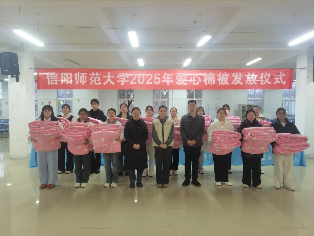 11月19日下午,法学与社会学学院在逸夫楼一站式学生活动中心举行2025年爱心棉被发放仪式。学院党委副书记刘雨亭、辅导员费泽丹、魏然与受助学生代表共同参与此次活动。